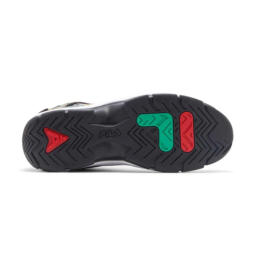 - Embroidered FILA logos on tongue, quarter, and back counter