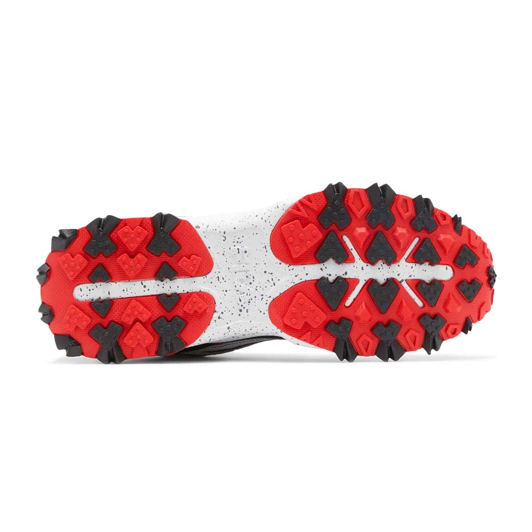 - Embroidered logos on tongue, quarter, and back counter