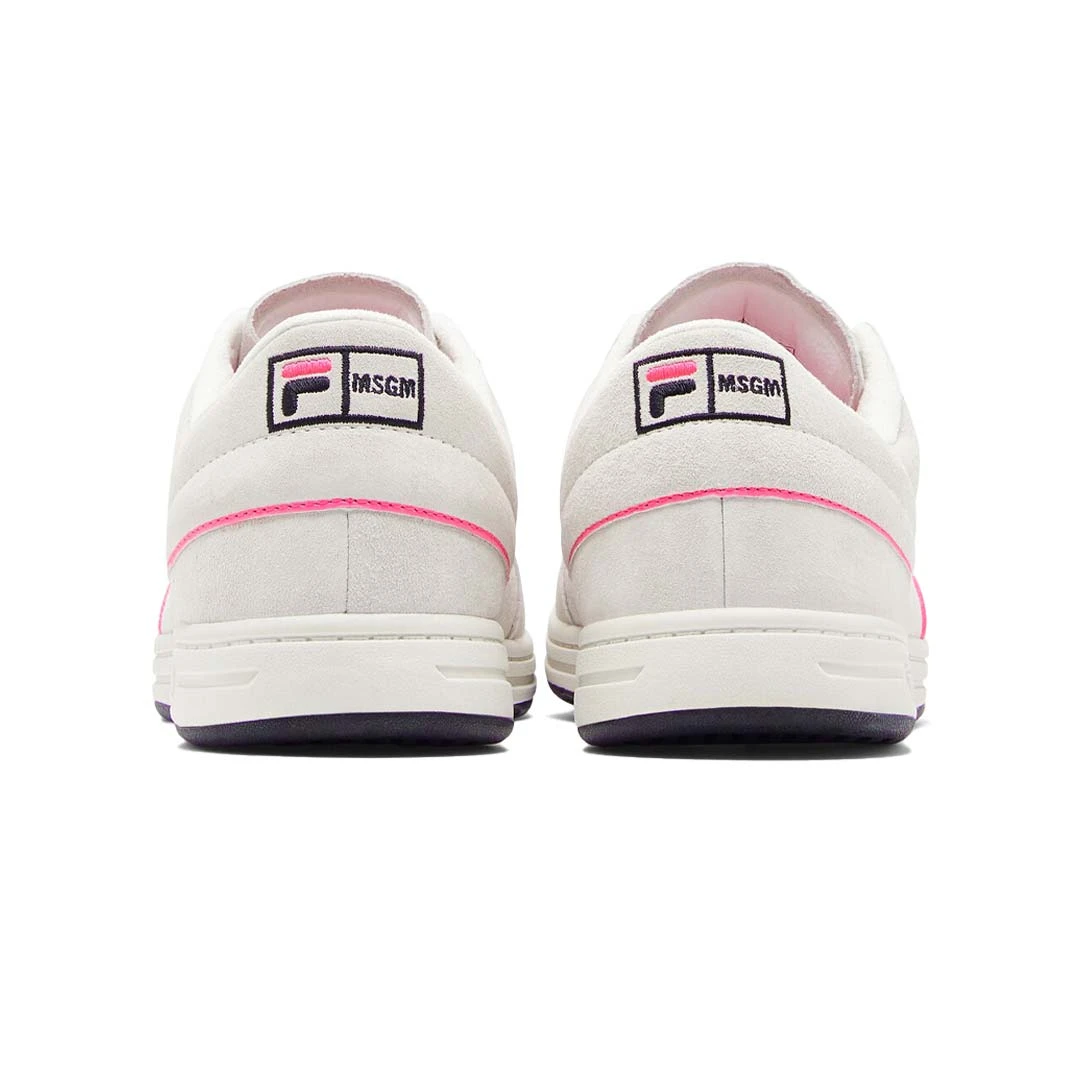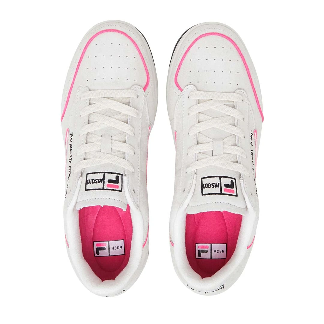 - Embroidered MSGM x FILA logos on quarter, tongue, toebox, and back counterÂ